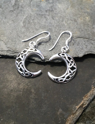 Celtic Knot Crescent Moon Sterling Silver Pair Hook Earrings by Blue Lily
